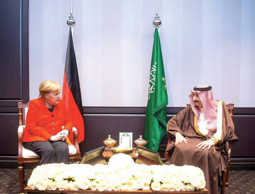 كما التقى خادم الحرمين الشريفين الملك سلمان بن عبدالعزيز آل سعود -حفظه الله- في مقر انعقاد القمة العربية الأوروبية أمس، مستشارة ألمانيا الاتحادية آنجيلا ميركل.. وتم خلال اللقاء، بحث تعزيز العلاقات الثنائية، وعدد من الموضوعات ذات الاهتمام المشترك، ومستجدات الأحداث في المنطقة. حضر اللقاء، معالي وزير الدولة عضو مجلس الوزراء الدكتور مساعد بن محمد العيبان، ومعالي وزير التجارة والاستثمار الدكتور ماجد بن عبدالله القصبي، ومعالي وزير الدولة للشئون الخارجية الأستاذ عادل بن أحمد الجبير، ومعالي مساعد السكرتير الخاص لخادم الحرمين الشريفين الأستاذ تميم بن عبدالعزيز السالم. كما حضر من الجانب الألماني المتحدث باسم الحكومة ستيفن زايبرت، ومستشار السياسة الأوروبية إيفا كورسيبيوس، ومستشار السياسة الخارجية جان هيكير، والمستشار الاقتصادي لارس هيندرك، ومدير القسم السياسي راينر رودولف.