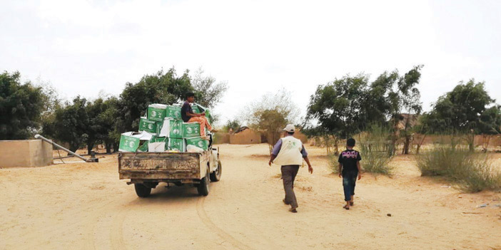كما وزع مركز الملك سلمان للإغاثة والأعمال الإنسانية أمس 635 سلة غذائية، تزن 47 طنًا، على النازحين والمتضررين في قرى السادة الشباكية والسادة المغتربين والسادة الشمالية في مديرية حيران بمحافظة حجه، يستفيد منها 3,800 فرد.