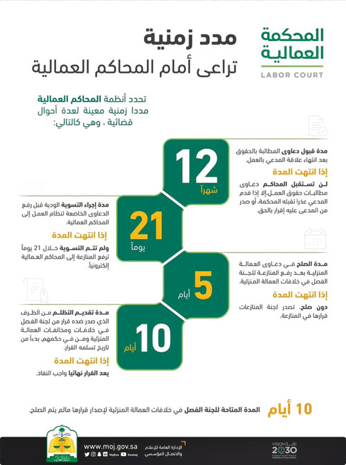 وأوضحت وزارة العدل أن هذه الخطوة ستحد من تأخر أصحاب العمل في دفع حقوق العاملين، كما ستحد من تدفق القضايا والمنازعات المتعلقة بالأجور إلى المحاكم، إضافة إلى تفعيل دور الوسائل البديلة في تسوية المنازعات؛ لأن كثيرًا من الشركات والمؤسسات المماطلة ستخشى من إيقاع الغرامة عليها؛ وهو ما يدفعها لأداء الحق وسرعة التسوية والمصالحة.