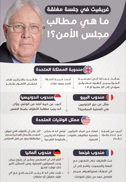 وأشاروا إلى أن مجلس الأمن يمكن أن يلوح ببيان، يحدد فيه المعرقلين للعملية السلمية، وأنه لن يتم التسامح مع أي طرف معرقل أو مخطئ في حق الشعب اليمني. وناشدوا الأطراف كافة التعاون مع بعثة الأمم المتحدة، وتطبيق اتفاقيات «استوكهولم».