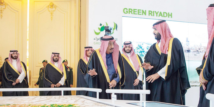 واستمع خادم الحرمين الشريفين، أيده الله، أثناء اطلاعه على المعرض المقام بهذه المناسبة إلى شرح مفصل من صاحب السمو الملكي الأمير محمد بن سلمان بن عبدالعزيز آل سعود، ولي العهد نائب رئيس مجلس الوزراء وزير الدفاع، حول هذه المشاريع الأربعة التي تقوم عليها «لجنة المشاريع الكبرى» برئاسة سموه، وتهدف إلى مضاعفة نصيب الفرد من المساحة الخضراء في الرياض 16 ضعفًا، عبر إنشاء أكبر حدائق المدن في العالم، وزراعة أكثر من 7 ملايين ونصف المليون شجرة في كافة أنحاء مدينة الرياض، إلى جانب تعزيز الجوانب الثقافية والفنية عبر إنشاء مجموعة من المتاحف والمسارح والمعارض وصالات السينما وأكاديميات الفنون، وتحويل مدينة الرياض إلى معرض مفتوح زاخر بالأعمال الإبداعية من خلال تنفيذ 1000 معلم وعمل فني من إبداعات فنانين محليين وعالميين، وتشجيع السكان على ممارسة الرياضات المختلفة واتباع أنماط صحية في الحياة، عبر إنشاء مسار رياضي يربط شرق المدينة بغربها بطول 135 كيلومترًا، يشتمل على مسارات مخصصة للدراجات الهوائية للهواة والمحترفين، وأخرى للخيول، إضافة إلى مسارات للمشاة، ومراكز رياضية وثقافية.
