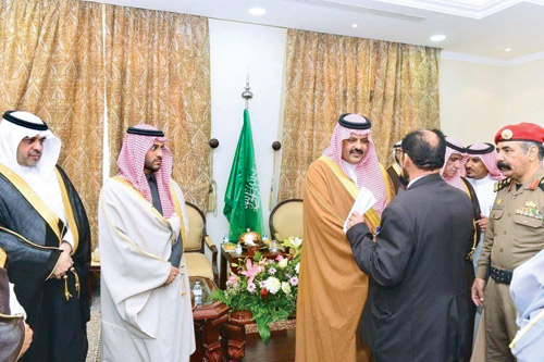 وفور وصول سموه لمبنى المحافظة كان في استقباله محافظ بقعاء سعد مبارك التركي ورؤساء المراكز وأعضاء المجلس المحلي وأعيان وأهالي بقعاء. واستقبل سموه عددًا من الأهالي واستمع لاحتياجات تطوير المحافظة.