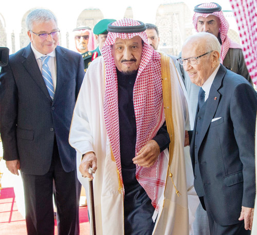 عقد خادم الحرمين الشريفين الملك سلمان بن عبدالعزيز آل سعود -حفظه الله- وفخامة الرئيس محمد الباجي قائد السبسي رئيس الجمهورية التونسية في قصر قرطاج بالعاصمة تونس أمس اجتماعًا ثنائيًّا، جرى خلاله استعراض العلاقات الأخوية بين البلدَيْن الشقيقَيْن.