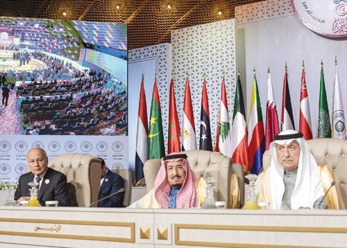 من جانبه، عبَّر معالي الأمين العام لجامعة الدول العربية أحمد أبو الغيط عن عميق التقدير لما قام به خادم الحرمين الشريفين الملك سلمان بن عبد العزيز آل سعود - حفظه الله - من جهود مشهودة، وما قامت به المملكة العربية السعودية تحت قيادته الحكيمة من اتصالات وإجراءات خلال عام القمة العربية التاسعة والعشرين في مختلف القضايا والأزمات العربية التي واجهتها أمتنا. وأكد معاليه أن هذه القمة تنعقد والمنطقة العربية تسير على خيط مشدود تتشبث شعوبها بأهداب الأمل والرجاء وترفض الانجراف إلى اليأس عارفة بأن مكانة هذه المنطقة ودورها في صناعة الحضارة يؤهلانها لمكان أفضل مما هي عليه اليوم. وقال معاليه: «ما زالت بعض دولنا تنزف، وبعض أبنائنا يُكابدون مرارات الصراع وآلام التشريد في سوريا واليمن وليبيا، وهي بعض من أعز الحواضر وأغلى المدن العربية على نفوسنا، لا زالت تعيش في ظلال الخوف، وتحت تهديد الميليشيات والجماعات الطائفية والعصابات الإرهابية، وجميعنا يعرف أن الحلول السياسية هي الكفيلة وحدها في نهاية المطاف بإنهاء النزاعات وجلب الاستقرار، فلا غالب في الحروب الأهلية، وإنما الكل مغلوب، المهزوم مغلوب والمنتصر مغلوب». وتطرق معاليه إلى التحديات التي يتعرض لها الأمن القومي العربي خلال السنوات الماضية، مشيراً إلى أن هذه التهديدات سواء تلك التي تنهش المجتمعات من داخلها وعلى رأسها الإرهاب، وانتشار التشكيلات المُسلحة خارج سيطرة الدولة، أو تلك التي تتربص بها من خارجها، وفي مقدمتها اجتراء بعض قوى الإقليم على الدول العربية، أو نكبة الاحتلال الإسرائيلي المستمرة منذ سبعة عقود وتزيد، تُنبه إلى ضرورة أن تتحد جميع الدول العربية في رؤيتها وتتفق على أن الأمن القومي العربي وحدة مترابطة، وقضية كبرى هي صون الدولة الوطنية وصون استقلالها ووحدتها، وحفظ تكامل ترابها وسيادتها، والدفاع عن حق شعوبها في العيش الآمن الحر الكريم. ومضى معاليه يقول: «إن ما يتهدد أمن العرب في أقصى المشرق ليس بعيداً عما يواجههم في القلب أو في أقصى المغرب والعكس صحيح، فالتهديدات واحدة، وكذا ينبغي أن تكون الاستجابة». وأشار معاليه إلى أن الحاجة تشتد اليوم أكثر من أي وقت مضى لمفهوم جامع للأمن القومي العربي، يتم العمل في إطاره والاستقواء بالمظلة العربية في مواجهة اجتراءات بعض جيراننا، والتدخلات الأجنبية في الشؤون العربية». وأكد معاليه أن التدخلات مأطراف إقليمية وخاصة إيران وتركيا فاقمت من تعقد الأزمات وأدت إلى استطالتها، بل واستعصائها على الحل، ثم خلقت أزمات ومشكلات جديدة على هامش المعضلات الأصلية، معبراً عن الرفض لهذه التدخلات كافة وما تحمله من أطماع ومخططات. وتابع معاليه: «ونقول بعبارة واضحة إن ظرف الأزمة هو حال مؤقتة، وعارض سيزول طال الزمن أم قصر، أما التعدي على التكامل الإقليمي للدول العربية ووحدتها الترابية فهو أمر مرفوض عربياً». وانتقد معاليه الإعلان الأمريكي الأخير بخصوص ضم الجولان السوري إلى إسرائيل، عادّاً الإعلان مناقضًا للأعراف القانونية المستقرة كافة، بل ولأسس النظام الدولي الراسخة، ويمنح المحتل الإسرائيلي شرعنة لاحتلاله لأرض عربية في الجولان السوري، مؤكداً في السياق ذاته أن الجولان هي أرض سورية محتلة بواقع القانون الدولي وقرارات مجلس الأمن. كما أدان مواقف الإدارة الأمريكية الأخيرة التي تُشجع الاحتلال على المضي قدماً في نهج العربدة والاجتراء، وتبعث بالرسالة الخطأ للشعب الفلسطيني والقيادة الفلسطينية، والتضييق المالي والسياسي على المؤسسات الفلسطينية، وخنق وكالة «الأونروا» التي تُعالج مأساة اللاجئين. وعبَّر معالي الأمين العام عن الإيمان بأن العمل العربي المشترك ولو في حده الأدنى يظل طوق نجاة وسط هذه الأنواء العاصفة. وشدد معاليه على أن الجامعة العربية تظل العنوان الأبرز والرمز الأبقى لكل ما يجمع العرب وما يوحد كلمتهم ويُسمع الآخرين صوتهم الجماعي حيال القضايا كافة التي تتعلق بمصيرهم ومستقبلهم، 