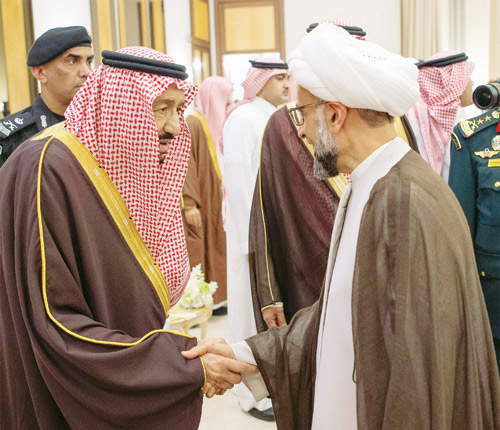 استقبل خادم الحرمين الشريفين الملك سلمان بن عبدالعزيز آل سعود - حفظه الله - في المنطقة الشرقية مساء أمس أصحاب السمو الأمراء، وأصحاب الفضيلة، والمعالي، وجموعًا من المواطنين الذين قدموا للسلام عليه - رعاه الله -.