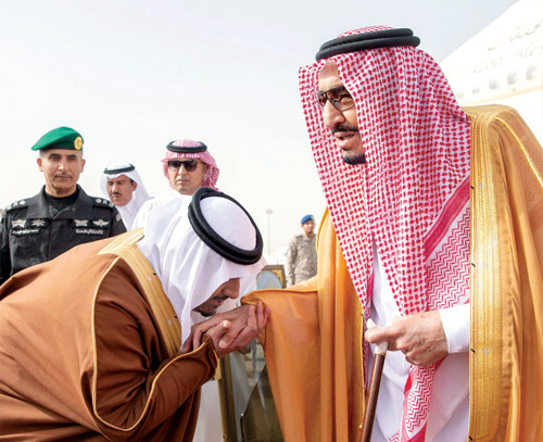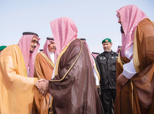 كما كان في استقبال خادم الحرمين الشريفين -حفظه الله- بساحة المطار كل من صاحب السمو الملكي الأمير محمد بن سعد بن عبدالعزيز، وصاحب السمو الأمير فيصل بن عبدالعزيز بن فيصل، وصاحب السمو الأمير محمد بن عبدالله بن محمد، وصاحب السمو الأمير فهد بن عبدالله بن محمد، وصاحب السمو الملكي الأمير سعود بن سعد بن عبدالعزيز، وصاحب السمو الملكي الأمير خالد بن سعد بن عبدالعزيز، وصاحب السمو الملكي الأمير سعود مساعد بن عبدالعزيز، وصاحب السمو الأمير متعب بن ثنيان بن محمد، وصاحب السمو الأمير عبدالرحمن بن سعود الكبير، وصاحب السمو الملكي الأمير سعد بن فهد بن محمد بن عبدالعزيز، وصاحب السمو الأمير خالد بن سعد بن فهد، وصاحب السمو الملكي الأمير محمد بن مشاري بن عبدالعزيز، وصاحب السمو الملكي الأمير متعب بن عبدالله بن عبدالعزيز، وصاحب السمو الملكي الأمير فيصل بن خالد بن عبدالعزيز مستشار خادم الحرمين الشريفين، وصاحب السمو الأمير سعود بن عبدالله بن ثنيان، وصاحب السمو الأمير تركي بن فهد بن جلوي، وصاحب السمو الأمير الدكتور مشعل بن عبدالله بن مساعد، وصاحب السمو الأمير الدكتور تركي بن سعود بن محمد المستشار في الديوان الملكي، وصاحب السمو الأمير أحمد بن عبدالله بن عبدالرحمن محافظ الدرعية، وصاحب السمو الأمير خالد بن سعود بن خالد المستشار في الديوان الملكي، وصاحب السمو الأمير بندر بن سعود بن محمد المستشار في الديوان الملكي، وصاحب السمو الملكي الأمير عبدالعزيز بن بندر بن عبدالعزيز، وصاحب السمو الأمير محمد بن سعود بن خالد، وصاحب السمو الأمير عبدالمحسن بن عبدالله بن عبدالرحمن، وصاحب السمو الأمير خالد بن ثنيان بن محمد، وصاحب السمو الأمير الدكتور بندر بن سلمان بن محمد، وصاحب السمو الملكي الأمير فيصل بن تركي بن عبدالعزيز المستشار في الديوان الملكي، وصاحب السمو الأمير منصور بن ثنيان بن محمد، وصاحب السمو الأمير محمد بن متعب بن ثنيان، وصاحب السمو الأمير مشعل بن متعب بن ثنيان، وصاحب السمو الملكي الأمير محمد بن فيصل بن بندر بن عبدالعزيز، وصاحب السمو الملكي الأمير سعود بن مشعل بن عبدالعزيز، وصاحب السمو الملكي الأمير نايف بن سلطان بن عبدالعزيز، وصاحب السمو الملكي الأمير نواف بن سلطان بن عبدالعزيز، وصاحب السمو الملكي الأمير سعود بن فيصل بن مساعد بن سعود بن عبدالعزيز، وأصحاب السمو الأمراء، وأصحاب الفضيلة والمعالي الوزراوقادة القطاعات العسكرية.