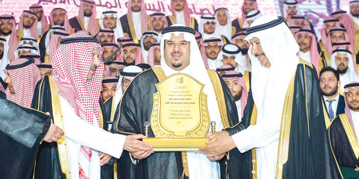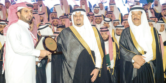 بعد ذلك، انطلقت مسيرة الخريجين، وسط صيحات أهاليهم وفرحتهم بتخرجهم، ثم ألقيت كلمة الطلاب، تبعها أداء القسم لطلاب كليتي الحقوق والطب، بعد ذلك صعد راعي الحفل المنصة الرئيسية يرافقه معالي رئيس مجلس الأمناء للجامعة ومدير الجامعة، وكرّم عددا من الطلاب الأوائل إلى جانب الجهات الراعية، ومن بينها «صحيفة الجزيرة»، كما تسلم سموه درعاً تكريمية بهذه المناسبة، ثم التقطت الصور التذكارية لسموه مع أبنائه الخريجين.