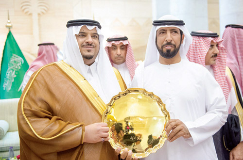 كرم صاحب السمو الملكي الأمير محمد بن عبدالرحمن بن عبدالعزيز نائب أمير منطقة الرياض بقصر الحكم أمس الفائزين بالمركز الأول في مهرجان الملك عبدالعزيز للإبل في نسخته الثالثة في فئات الإنتاج والفحل وإنتاجه والفردي والهجن الأصايل ومسابقة طبع الإبل.