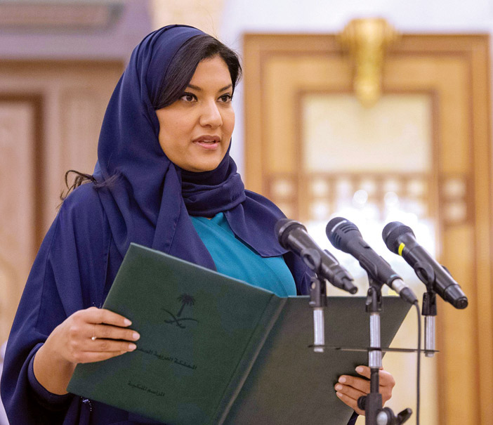 فقد أدى القسم كل من صاحبة السمو الملكي الأميرة ريما بنت بندر بن سلطان بن عبدالعزيز السفيرة المعيَّنة لدى الولايات المتحدة الأمريكية، وصاحب السمو الملكي الأمير عبدالله بن خالد بن سلطان بن عبدالعزيز السفير المعيَّن لدى جمهورية النمسا، والسفير المعيَّن لدى جمهورية الكاميرون عبدالإله بن محمد الشعيبي، والسفير المعيَّن لدى جمهورية قبرص خالد بن محمد الشريف، قائلين: «أقسم بالله العظيم أن أكون مخلصًا لديني، ثم لمليكي وبلادي، وأن لا أبوح بسرٍّ من أسرار الدولة، وأن أحافظ على مصالحها وأنظمتها في الداخل والخارج، وأن أؤدي أعمالي بالصدق والأمانة والإخلاص».
