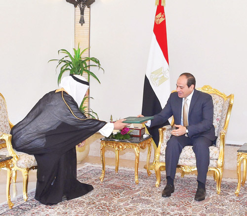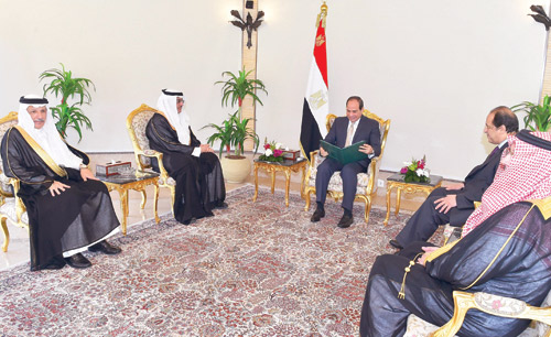 بعث خادم الحرمين الشريفين الملك سلمان بن عبدالعزيز آل سعود -حفظه الله- رسالة خطية لفخامة الرئيس عبدالفتاح السيسي رئيس جمهورية مصر العربية تتضمن تأكيد متانة العلاقات التاريخية التي تجمع بين البلدين والشعبين الشقيقين، وحرص المملكة على تعزيز أطر التعاون الإستراتيجي بين البلدين على مختلف الأصعدة، ومواصلة مسيرة العمل المشترك والتنسيق المكثف مع مصر إزاء القضايا الإقليمية والدولية المختلفة. جاء ذلك خلال استقبال الرئيس المصري أمس معالي وزير الدولة عضو مجلس الوزراء، الدكتور عصام بن سعيد، ومعالي وزير الدولة لشؤون الدول الأفريقية الأستاذ أحمد بن عبدالعزيز قطان.