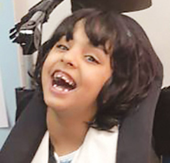 وبين رموز الإرادة تبرز الطفلة «منيرة» ابنة الثامنة، وهي مصابة بشلل دماغي رباعي مع صعوبة في النطق، بل إنها تصنف غير ناطقة، وتستخدم الكرسي المتحرك في التنقل، حيث لا تستطيع الوقوف أو الاعتماد على نفسها في الحركة.