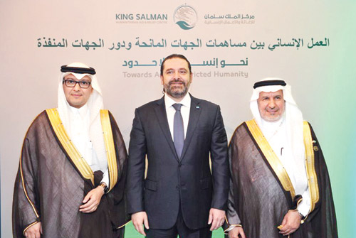 بحضور دولة رئيس مجلس الوزراء اللبناني سعد الحريري نظمت سفارة خادم الحرمين الشريفين في بيروت أمس ندوة لمركز الملك سلمان للإغاثة والأعمال الإنسانية بعنوان: «العمل الإنساني بين مساهمات الجهات المانحة ودور الجهات المنفذة»، شارك فيها معالي المستشار بالديوان الملكي المشرف العام على المركز الدكتور عبدالله بن عبدالعزيز الربيعة، ومعالي المفوض العام لوكالة الأمم المتحدة لغوث وتشغيل اللاجئين الفلسطينيين (الأونروا) بيير كرينبول، ومدير مكتب منظمة اليونسكو للتربية في الدول العربية الدكتور حمد الهمامي، ورئيس بعثة المنظمة الدولية للهجرة السيد فوزي الزيود، والأمين العام للهيئة العليا للإغاثة اللبنانية اللواء الركن محمد خير، ومديرة العلاقات الخارجية بالمفوضية السامية للأمم المتحدة لشؤون اللاجئين السيدة دومينيك هايد.