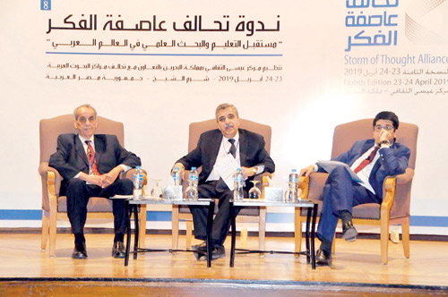 ومن جانبه قال نائب رئيس مجلس أمناء مركز عيسى الثقافي المدير التنفيذي د. الشيخ خالد بن خليفة آل خليفة -في ختام أعمال الندوة - شهدنا خلال هذين اليومين تألقا واضحاً في مستوى المواضيع والأوراق والعروض التي طرحت حول موضوع النسخة الثامنة من ندوة تحالف عاصفة الفكر بعنوان «مستقبل التعليم والبحث العلمي في العالم العربي». فقد راعينا تنوع اختصاصات المتحدثين في الجلسات، تنوعا أعطى لنقاشاتنا ثراءً وتوسعا في فهم وإدراك حقيقة هاجس التعليم والبحث العلمي في عالمنا العربي.