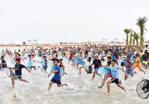 احتفى شباب فرسان بسمك الحريد الببغاء الذي يزور جزر فرسان مرة في كل عام، وذلك في ظاهرة عرفها أهالي فرسان منذ مئات السنين. وقام الصيادون باعتراض سمك الحريد في خط سيره بالممر المائي الضحل بشاطئ الحصيص؛ ليتم إغلاق الشباك على مجموعات من تلك الأسماك، وجرها إلى موقع قريب من الشاطئ، حيث ينتظر على طرفه أهالي الجزيرة والمشاركون في المهرجان متأهبين للظفر بما يستطيعون من هذه الأسماك.