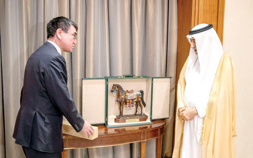 استقبل معالي وزير الخارجية الدكتور إبراهيم بن عبدالعزيز العساف، في ديوان الوزارة بالرياض أمس معالي وزير الخارجية الياباني تارو كونو.