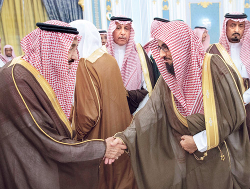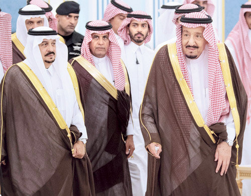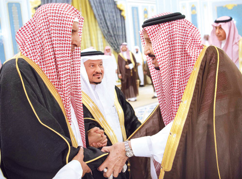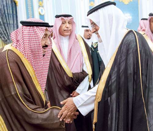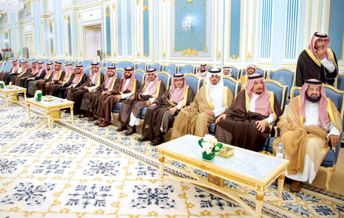 استقبل خادم الحرمين الشريفين الملك سلمان بن عبدالعزيز آل سعود -حفظه الله- في قصر اليمامة بالرياض أمس، أصحاب السمو الأمراء، وسماحة مفتي عام المملكة، وأصحاب الفضيلة العلماء، وجمعاً من المواطنين الذين قدموا للسلام عليه -رعاه الله-.