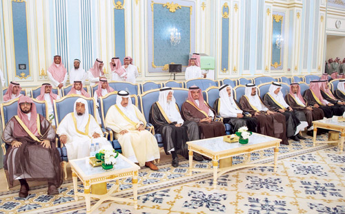 حضر الاستقبال، صاحب السمو الأمير سعد بن عبدالله بن عبدالعزيز بن تركي، وصاحب السمو الملكي الأمير تركي الفيصل بن عبدالعزيز، وصاحب السمو الملكي الأمير فيصل بن بندر بن عبدالعزيز أمير منطقة الرياض، وصاحب السمو الملكي الأمير سعود بن سعد بن عبدالعزيز، وصاحب السمو الملكي الأمير خالد بن سعد بن عبدالعزيز، وصاحب السمو الأمير فيصل بن محمد بن عبدالعزيز بن سعود، وصاحب السمو الملكي الأمير محمد بن مشاري بن عبدالعزيز، وصاحب السمو الملكي الأمير الدكتور منصور بن متعب بن عبدالعزيز وزير الدولة عضو مجلس الوزراء مستشار خادم الحرمين الشريفين، وصاحب السمو الأمير سعود بن عبدالله بن ثنيان، وصاحب السمو الأمير الدكتور مشعل بن عبدالله بن مساعد، وصاحب السمو الأمير الدكتور سعود بن سلمان بن محمد، وصاحب السمو الملكي الأمير منصور بن ناصر بن عبدالعزيز سفير خادم الحرمين الشريفين لدى سويسرا، وصاحب السمو الأمير منصور بن ثنيان بن محمد، وصاحب السمو الأمير فهد بن سعد بن عبدالله بن تركي، وصاحب السمو الأمير سعود بن عبدالله بن سعود، وصاحب السمو الأمير مشعل بن متعب بن ثنيان، وصاحب السمو الملكي الأمير سعود بن فيصل بن مساعد بن عبدالعزيز، وصاحب السمو الأمير محمد بن نايف بن عبدالله، وصاحب السمو الملكي الأمير فواز بن بندر بن عبدالعزيز، وصاحب السمو الأمير نواف بن ناصر بن ثنيان، وصاحب السمو الأمير فيصل بن تركي بن سعد، وصاحب السمو الملكي الأمير عبدالمجيد بن عبدالإله بن عبدالعزيز، وصاحب السمو الملكي الأمير عبدالرحمن بن نايف بن سعود بن عبدالعزيز، وصاحب السمو الأمير ثامر بن فيصل بن تركي، وصاحب السمو الأمير سلطان بن بندر بن سعد، وصاحب السمو الأمير عبدالرحمن بن محمد بن متعب.