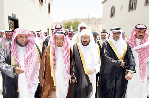 وأثنى معاليه على ما يقوم به رجال الأعمال المخلصون الصالحون الصادقون ومنهم الشيخ عبد الله بن عبد العزيز الراجحي -رحمه الله- الذي بنى هذا الجامع وبذل فيه وبسخاء، وجزى الله خيرا أبناءه البررة وعلى رأسهم الشيخ صالح بن عبد الله وأخوه متعب بن عبد الله وإخوانهم جميعًا الذين أتموا هذا البناء الجميل وبذلوا فيه وبسخاء ونفذوا وصية والدهم -رحمه الله- وهذا هو الذي يبقى وهذا هو العمل الصالح الذي أرجو الله سبحانه وتعالى أن يكون لمن بناه وتسبب فيه وأعان عليه بيت في الجنة، وهذا هو العمل الصالح الذي يجب أن نتنافس عليه جميعًا، والحكومة وفقها الله بقيادة مولاي خادم الحرمين الشريفين وولي عهده الأمين يبذلون بسخاء ويعطون لوزارة الشؤون الإسلامية بسخاء لبناء بيوت الله، ولكن من منطلق إتاحة الفرصة لأبناء هذا الوطن للمشاركة في بناء بيوت لله سبحانه وتعالى من باب الإيثار وإتاحة الفرصة للمواطنين للبذل والعطاء وإعطائهم الفرصة أيضاً لبناء هذه الدولة المباركة وعمارة هذا الوطن الغالي على الجميع.
