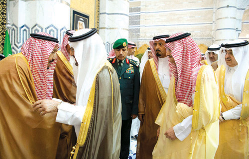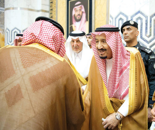 وقد وصل في معية خادم الحرمين الشريفين - حفظه الله -، صاحب السمو الملكي الأمير عبد الإله بن عبد العزيز آل سعود المستشار الخاص لخادم الحرمين الشريفين، وصاحب السمو الأمير خالد بن فهد بن خالد، وصاحب السمو الملكي الأمير منصور بن سعود بن عبد العزيز، وصاحب السمو الملكي الأمير طلال بن سعود بن عبد العزيز، وصاحب السمو الأمير خالد بن سعد بن فهد، وصاحب السمو الملكي الأمير خالد بن بندر بن عبد العزيز مستشار خادم الحرمين الشريفين، وصاحب السمو الملكي الأمير الدكتور منصور بن متعب بن عبد العزيز وزير الدولة عضو مجلس الوزراء مستشار خادم الحرمين الشريفين، وصاحب السمو الأمير فهد بن عبد الله بن عبد العزيز بن مساعد، وصاحب السمو الملكي الأمير سطام بن سعود بن عبد العزيز، وصاحب السمو الأمير فيصل بن سعود بن محمد، وصاحب السمو الملكي الأمير الدكتور حسام بن سعود بن عبد العزيز أمير منطقة الباحة، وصاحب السمو الملكي الأمير الدكتور عبد العزيز بن سطام بن عبد العزيز مستشار خادم الحرمين الشريفين، وصاحب السمو الملكي الأمير محمد بن عبد الرحمن بن عبد العزيز نائب أمير منطقة الرياض، وصاحب السمو الملكي الأمير سعود بن سلمان بن عبد العزيز، وصاحب السمو الملكي الأمير تركي بن سلمان بن عبد العزيز، وصاحب السمو الملكي الأمير عبد المجيد بن عبد الإله بن عبد العزيز، وصاحب السمو الملكي الأمير راكان بن سلمان بن عبد العزيز.