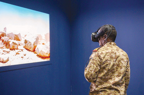 واطلع أعضاء الوفد على مفهوم المعرض من خلال رحلة مجازية بتقنيات الواقع الافتراضي، أعادتهم إلى مواقع ثقافية عربية شهيرة في الموصل ونينوى وحلب وتدمر ولبدة الكبرى، وجعلتهم يشعرون بحجم الخسارة الحضارية التي تسبب بها الإرهاب ضد تلك المواقع المُدمّرة.