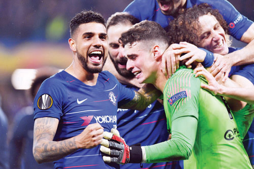 أكمل تشلسي هيمنة الأندية الإنجليزي على المسابقات الأوروبية هذا الموسم بتأهله إلى نهائي الدوري الأوروبي "يوروبا ليغ" لكرة القدم بفوزه إيابًا على ضيفه إينتراخت فرانكفورت الألماني بركلات الترجيح 4- 3، بعد تعادلهما 1- 1 في الوقتين الأصلي الإضافي أمس الأول الخميس.