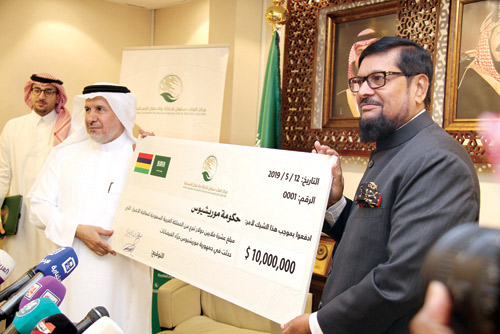 سلمت المملكة من خلال مركز الملك سلمان للإغاثة والأعمال الإنسانية جمهورية دولة موريشيوس منحة من التمور بلغت 50 طناً وشيكاً بمبلغ عشرة ملايين دولار لمعالي السيد/ شوكه علي سوداء رئيس الحزب الحاكم عضو البرلمان، وسلمت هذه المساعدات أثناء مؤتمر صحفي عقد في مقر المركز.