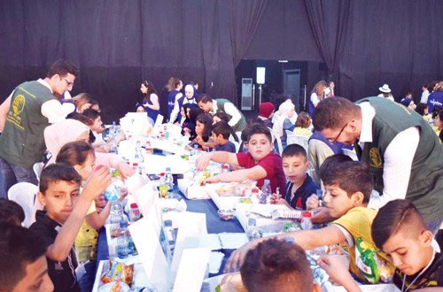أقام مركز الملك سلمان للإغاثة والأعمال الإنسانية في لبنان تحت رعاية دولة رئيس مجلس الوزراء اللبناني سعد الحريري، وبالتعاون مع جمعية أجيالنا الاجتماعية أمس الأول، مأدبة إفطار ومهرجانًا على شرف ألفي طفل يتيم من مختلف المناطق اللبنانية، حيث تخللت المهرجان ألعاب ترفيهية، وتوزيع الهدايا على الأطفال.