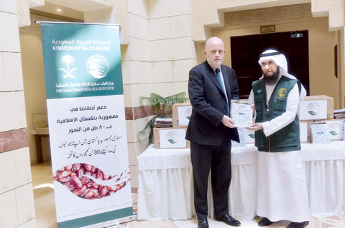 كما سلّم فريق مركز الملك سلمان للإغاثة والأعمال الإنسانية شحنة من التمور تزن 80 طناً لبرنامج الغذاء العالمي لتوزيعها على المحتاجين من الأشقاء في جمهورية باكستان.