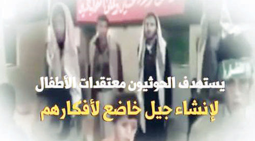 وأكدت مصادر مطلعة بأن الحوثيين يستهدفون معتقدات الشباب والأطفال والنساء حتى يكون هذا الجيل خاضعًا لأفكارهم وتنفيذ المشروع الإيراني الطائفي في اليمن وتمجيد الخميني من خلال الأدعية واستقطاب شعراء لكتابة أناشيد يتغنى بها الشباب والطلاب في المدارس لتسميم أفكارهم وحشد أكبر عدد من أبناء اليمن للمضي معهم.