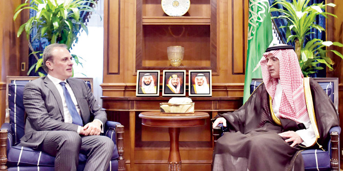 كما استقبل معاليه في مقر وزارة الخارجية بالرياض أمس، سفير المملكة المتحدة لدى المملكة سايمون كوليس. ونوقشت خلال اللقاء مستجدات القضايا الإقليمية والدولية، والموضوعات ذات الاهتمام المشترك. حضر الاجتماع، مدير إدارة شؤون الدول الأوربية بوزارة الخارجية السفير الدكتور معن حافظ.
