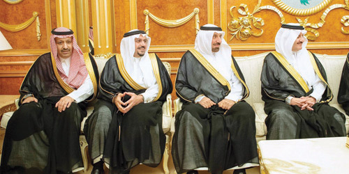 استقبل خادم الحرمين الشريفين الملك سلمان بن عبدالعزيز آل سعود - حفظه الله - في قصر السلام بجدة، بحضور صاحب السمو الملكي الأمير محمد بن سلمان بن عبدالعزيز ولي العهد نائب رئيس مجلس الوزراء وزير الدفاع مساء أمس أصحاب السمو أمراء المناطق بمناسبة اجتماعهم السنوي السادس والعشرين، وهم صاحب السمو الملكي الأمير خالد الفيصل بن عبدالعزيز مستشار خادم الحرمين الشريفين أمير منطقة مكة المكرمة، وصاحب السمو الملكي الأمير محمد بن ناصر بن عبدالعزيز أمير منطقة جازان، وصاحب السمو الملكي الأمير فيصل بن بندر بن عبدالعزيز أمير منطقة الرياض، وصاحب السمو الملكي الأمير فهد بن سلطان بن عبدالعزيز أمير منطقة تبوك، وصاحب السمو الملكي الأمير سعود بن نايف بن عبدالعزيز أمير المنطقة الشرقية، وصاحب السمو الأمير جلوي بن عبدالعزيز بن مساعد أمير منطقة نجران، وصاحب السمو الملكي الأمير الدكتور فيصل بن مشعل بن سعود بن عبدالعزيز أمير منطقة القصيم، وصاحب السمو الملكي الأمير الدكتور حسام بن سعود بن عبدالعزيز أمير منطقة الباحة، وصاحب السمو الملكي الأمير عبدالعزيز بن سعد بن عبدالعزيز أمير منطقة حائل، وصاحب السمو الملكي الأمير تركي بن طلال بن عبدالعزيز أمير منطقة عسير، وصاحب السمو الملكي الأمير فيصل بن سلمان بن عبدالعزيز أمير منطقة المدينة المنورة، وصاحب السمو الملكي الأمير فيصل بن خالد بن سلطان بن عبدالعزيز أمير منطقة الحدود الشمالية، وصاحب السمو الملكي الأمير فيصل بن نواف بن عبدالعزيز أمير منطقة الجوف.