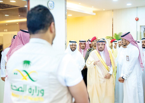 حيث دشن سموه فور وصوله مشروع مركز المراقبة الأمنية السحابية للمنشآت الصحية، واستمع لشرح مفصل عن أهداف المشروع الذي يسهم في مراقبة جميع مراكز الرعاية الصحية الأولية مركزياً من خلال إدارة تشغيل المنشأة بالمديرية، وذلك لمتابعة الأداء في جميع المراكز الصحية والتأكد من مأمونيتها وسلامتها بشكل مباشر ولحظي على مدار 24 ساعة، كما دشن سموه مركز القيادة والتحكم الذي يقوم بمراقبة 30 مؤشراً صحياً في جميع مستشفيات المنطقة ويشمل أقسام الطوارئ ومدد الانتظار ومواعيد العيادات الخارجية ومراقبة نسب إشغال الأسرة والمرضى طويلي الإقامة، إضافة إلى رصد الأمراض الأكثر تسجيلاً لدى الأقسام بالمستشفيات، ويتم تحديث المؤشرات المعمول بها كل 15 دقيقة إلكترونياً وترتبط كل منشأة صحية بالنظام لتدوين جميع الحالات الصحية والمراجعين للمستشفيات، مطلعاً سموه على برنامج هدف الذي يقوم بقياس أداء الإدارات بالمديرية ونسب تحقيق الأهداف وإنجازها.