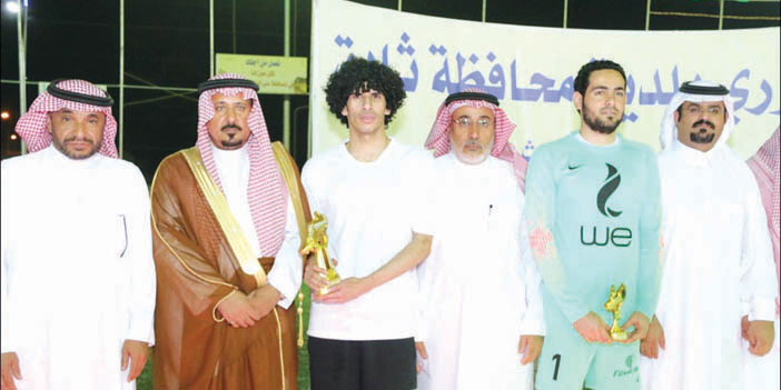 بحضور محافظ ثادق سعد بن معمر وبحضور رئيس بلدية ثادق صالح الجديعي ورئيس المجلس البلدي د. حمد السويلم ومدير مكتب التعليم عبدالرحمن الماجد وعدد من المسؤولين والمواطنين اختتمت بطولة الدورة الرمضانية الذي تنفذها البلدية بدعم من رجال الأعمال وبعد المباراة النهائية التي انتهت بفوز فريق (الترجي) على فريق (الدريمز تيم) في نهائي البطولة بهدف مقابل لا شيء أقيم بعدها حفل خطابي بدأ بالتقديم ثم القرآن الكريم ثم كلمة رئيس البلدية شكر فيها المحافظ على تشريفه الحفل وكذك دعم رجال الأعمال وجهود العاملين في هذا الدوري الذي يساهم في القضاء على أوقات الفراغ وإشغالهم بالمفيد المسلي. بعدها كرم المحافظ الفرق الفائزة بالمركز الأول والثاني وكذلك أفضل حارس وأفضل هداف وأفضل لاعب سلمت لهم الميداليات والجوائز وللفائز كأس البطولة وكذلك تكريم الجهات الداعمة والجهات المشاركة والعاملين في اللجان وفي الختام أشاد محافظ ثادق بجهود البلدية واللجنة المنظمة على هذه البطولة التي استمتع بها الشباب على مدى الأيام الماضية.
