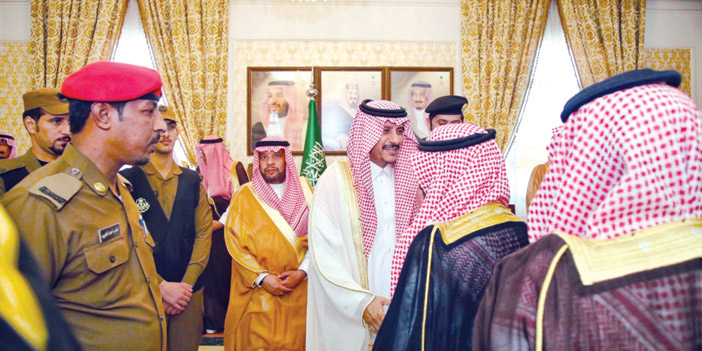 جاء ذلك خلال استقبال سموه أمس بعد صلاة عيد الفطر المبارك في ديوان المحافظة عدداً من المشايخ ورؤساء المراكز والمسؤولين من مدنيين وعسكريين والأهالي وجمع من المواطنين بالمحافظة الذين قدَّموا التهنئة لسموه بمناسبة العيد السعيد.