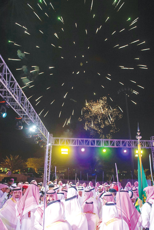 بعده قدم أوبريت «قصيم الخير» تخلله عدد من العروض الفلكلورية من الألوان الشعبية في المملكة، والعرضة السعودية، فيما أضاءت سماء الحفل الألعاب النارية ابتهاجاً بهذه المناسبة السعيدة.
