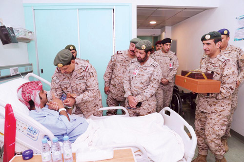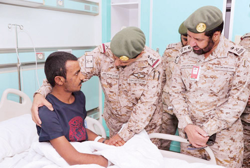 ونقل معالي قائد القوات البرية للمصابين تحيات وتقدير خادم الحرمين الشريفين الملك سلمان بن عبدالعزيز آل سعود، القائد الأعلى لكافة القوات العسكرية، وصاحب السمو الملكي الأمير محمد بن سلمان بن عبدالعزيز ولي العهد نائب رئيس مجلس الوزراء وزير الدفاع -حفظهما الله- وتمنياتهما لهم بالشفاء العاجل، وأن يمن عليهم بالصحة والعافية.