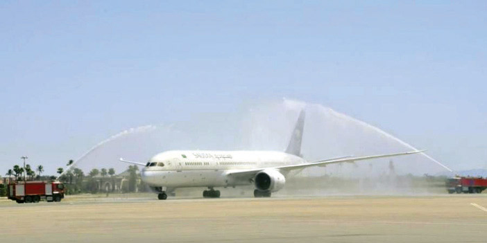 وفور هبوط طائرة «السعودية» من طراز (B787) دريملاينر في مطار مراكش المنارة الدولي، تم استقبالها من قبل إدارة المطار بالمرور تحت قوس المياه التي تم رشها ترحيبا بأول رحلة كما جرت العادة في الرحلات الافتتاحية، كما تم استقبال الضيوف القادمين على الطائرة من مطار الملك عبد العزيز الدولي بجدة بالتمر والحليب والشاي والحلويات المغربية والورود، إلى جانب ألوان من الفلكلور الشعبي المراكشي. وأقيم حفل استقبال رسمي بهذه المناسبة، بحضور عدد من المسؤولين في مقدمتهم معالي سفير خادم الحرمين الشريفين لدى المملكة المغربية عبد الله الغريري، ومدير عام الطيران المدني المغربي زكريا بلغازي، وعمدة مدينة مراكش محمد العربي بلقايد، ومدير الخطوط السعودية بالمغرب محمد السمراني، إلى جانب عدد من مسؤولي وزارة السياحة والطيران المدني وإدارة مطار مراكش الدولي، ووكالات السفر المغربية وممثلي وسائل الإعلام.