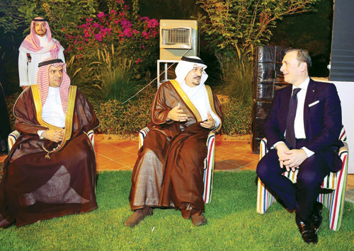 شرّف صاحب السمو الملكي الأمير فيصل بن بندر بن عبد العزيز أمير منطقة الرياض أمس حفل سفارة إيطاليا لدى المملكة بمناسبة ذكرى اليوم الوطني لبلادها، وذلك بمقر السفارة في حي السفارات بالرياض.