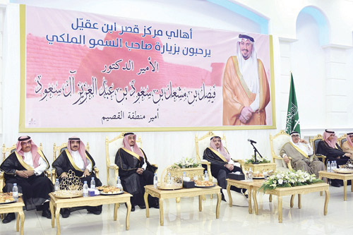 حيث تفقد سموه خلال الزيارة تقاطع الطريق الدائري الشمالي مع طريق الملك فهد (القرين)، وتقاطع الطريق الدائري الغربي مع طريق الملك عبد العزيز (قصر ابن عقيل)، وتقاطع طريق الملك فهد مع الدائري الجنوبي، وتقاطع طريق الملك عبدالعزيز مع الدائري الشرقي بطول 44كم، وازدواج طريق الملك عبدالعزيز باتجاه قصر ابن عقيل والنبهانية بطول 5كم. ثم توجه لمركز قصر ابن عقيل لزيارة أسرة العقيّل، حيث تخلل الحفل المقام من قبل أسرة العقيل عدد من الفقرات والكلمات والقصائد الترحيبية بمقدم سموه وزيارته لهم.