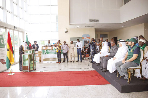 كما سلّم فريق المركز أمس 50 طنا من التمور هدية المملكة لجمهورية غانا، بحضور معالي نائب وزيرة الخارجية والتكامل الإقليمي الغاني محمد تيجاني، و سفير خادم الحرمين الشريفين في غانا مشعل حمدان الروقي، وممثلي وزارة المالية السعودية، وفريق من المركز، وذلك في مقر وزارة الخارجية والتكامل الإقليمي في العاصمة أكرا.