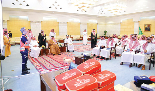 من جهة أخرى شارك صاحب السمو الملكي الأمير فيصل بن بندر بن عبد العزيز أمير منطقة الرياض أمس, في دورة الإسعافات الأولية لموظفي إمارة المنطقة التي تنظمها لجنة أصدقاء الهلال الأحمر بالتعاون مع فرع هيئة الهلال الأحمر السعودي بالمنطقة. وتستهدف الدورة معرفة المهارات العامة والمتخصصة للقيام بالإسعاف الطارئ عند التعرض لحالات طبيّة مفاجئة من خلال فرضيات على عمليات إنعاش القلب والرئتين, والإنقاذ الوقتي حتى تصل فرق الإسعاف. حضر الدورة معالي وكيل إمارة منطقة الرياض الدكتور فيصل بن عبد العزيز السديري.