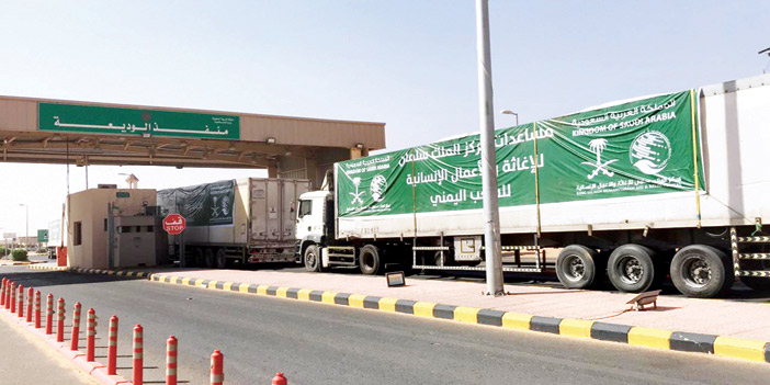 عبرت منفذ الوديعة الحدودي مئات الشاحنات الإغاثية تحمل على متنها مساعدات إنسانية متنوعة في طريقها لمختلف المدن والمحافظات في اليمن منذ مطلع العام الحالي 2019م، وذلك اتساقًا مع الدور الإنساني الذي تتبناه المملكة العربية السعودية ممثلة بمركز الملك سلمان للإغاثة والأعمال الإنسانية، من أجل تخفيف حدة معاناة الشعب اليمني الشقيق جراء الانتهاكات الإنسانية لميليشيا الحوثي المدعومة من إيران. وجرى تسيير 546 شاحنة تحمل 10,640 طنًا من السلال الغذائية والمواد الطبية والإيوائية والأدوية والتمور وأجهزة الغسيل الكلوي والأطقم المدرسية وخلافه متوجهة إلى محافظات ومدن اليمن دون استثناء. وتسعى المملكة ممثلة بمركز الملك سلمان للإغاثة من خلال هذه المساعدات إلى الوقوف مع الأشقاء في اليمن بكافة مناطقه دون تفريق، حفظاً على كرامتهم وتلبية لاحتياجاتهم وللتخفيف من معاناتهم جراء الأزمة الإنسانية التي تمر بهم.