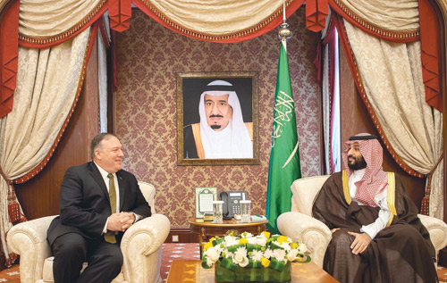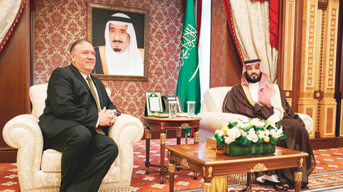 اجتمع صاحب السمو الملكي الأمير محمد بن سلمان بن عبدالعزيز ولي العهد نائب رئيس مجلس الوزراء وزير الدفاع، في مكتبه بقصر السلام في جدة أمس، مع معالي وزير خارجية الولايات المتحدة الأمريكية مايك بومبيو.