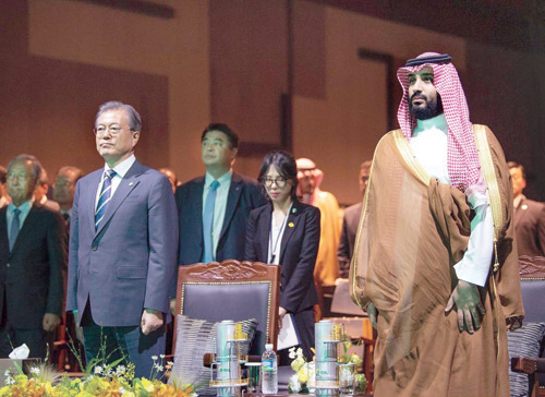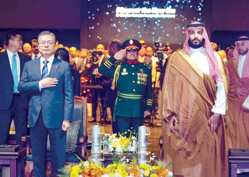 وأشاد بتاريخ الصداقة المميز بين كوريا والمملكة التي تمتد لأكثر من نصف قرن عملت فيها شركات كثيرة بسوق المملكة بالهندسة والإنشاءات والبنية التحتية للموانئ والطرق.. مشيراً إلى أن رئيس جمهورية كوريا وسمو ولي العهد يدشنان مصفاة S-Oil الكورية.. وبيّن أن شركة S-Oil وشركة أرامكو اتفقتا على ضخ كثير من الاستثمارات الجديدة في قطاع البتروكيماويات.