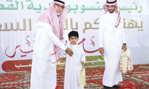 كما تم تكريم المشاركين في الاحتفال الذي اشتمل على عدد من الفقرات والعرضة السعودية وكلمة الأهالي ألقاها عبد الله محمد القاسم أثنى فيها على هذه اللقاءات والاحتفالات لما فيها من اجتماع للأهالي وكذلك التواصل فيما بينهم وإظهار الفرحة والتقارب بين الحضور.