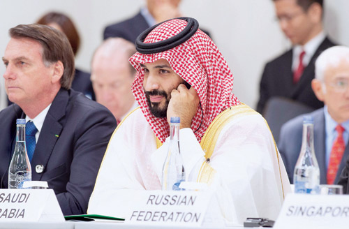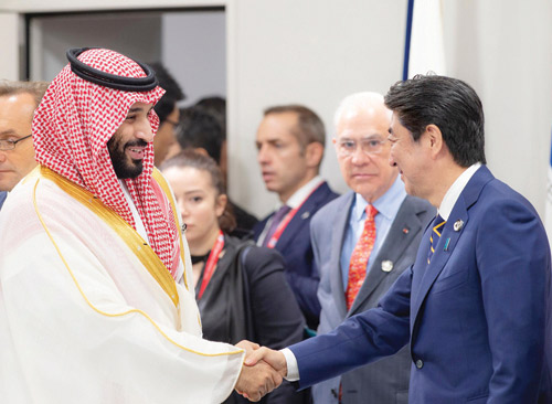 عقد قادة ورؤساء وفود دول مجموعة العشرين في أوساكا أمس جلسة مصاحبة لأعمال القمة بعنوان (الاقتصاد الرقمي). وشارك في الجلسة صاحب السمو الملكي الأمير محمد بن سلمان بن عبدالعزيز ولي العهد نائب رئيس مجلس الوزراء وزير الدفاع رئيس وفد المملكة المشارك في أعمال القمة.