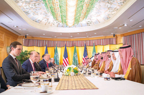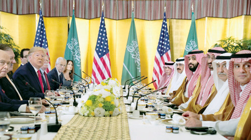 وقد عقد سمو ولي العهد وفخامة الرئيس الأمريكي اجتماعًا، عبّر فخامته في مستهله عن اعتزازه بصداقة سمو ولي العهد، مشيدًا بالإنجازات الكبيرة التي حققها للمملكة، وبخاصة الجهود في سبيل مكافحة الإرهاب وتجفيف منابعه. وتطرق فخامته إلى العلاقات التجارية والاقتصادية، والعسكرية، بين أمريكا والمملكة وما تحققها من مصالح مشتركة للبلدين، واصفاً إياها بالرائعة.