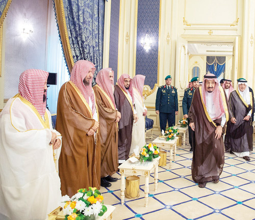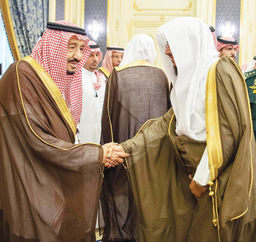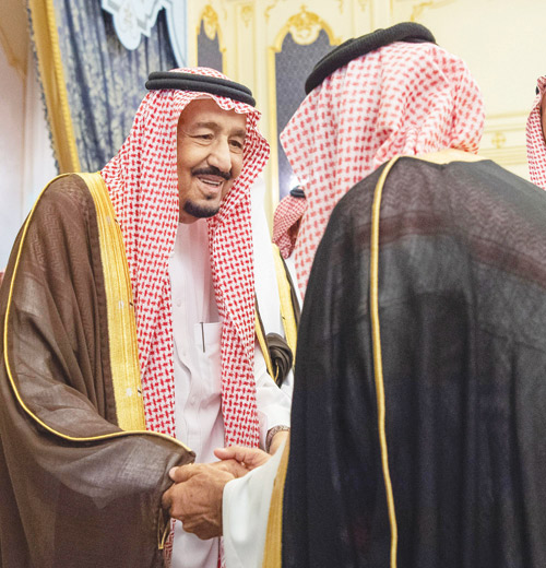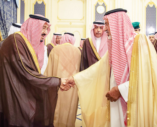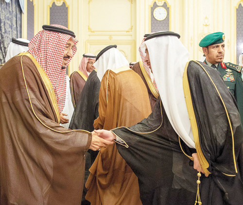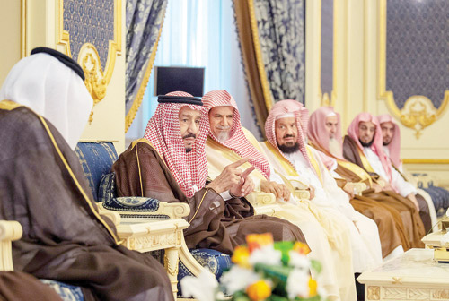 استقبل خادم الحرمين الشريفين الملك سلمان بن عبدالعزيز آل سعود -حفظه الله- في قصر السلام بجدة أمس، أصحاب السمو الأمراء، وأصحاب الفضيلة العلماء والمعالي، وجمعاً من المواطنين الذين قدموا للسلام عليه -رعاه الله-. وفي بداية الاستقبال، أنصت الجميع لتلاوة آيات من القرآن الكريم.. ثم تشرف الحضور بالسلام على خادم الحرمين الشريفين -أيده الله-.