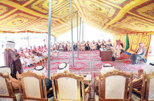 وأكد سمو الأمير تركي بن طلال أن هذه المنزلة والدور العريقين لشيخ الشمل وشيخ القبيلة والنائب يحظيان باهتمام كبير من خادم الحرمين الشريفين الملك سلمان بن عبدالعزيز آل سعود وسمو ولي عهده الأمين -حفظهما الله- اللذين وجها بضرورة تمكينهم وإعانتهم وحثهم على القيام بالدور المناط بهم بصفتهم همزة وصل بين الدولة وبين قبائلهم من أجل تحقيق تطلعات القبائل وإرساء وترسيخ السلم الاجتماعي وحماية العادات القبلية السعودية الفاضلة وإحيائها وإحلالها في المنزلة اللائقة بها ثقافة وفكراً.