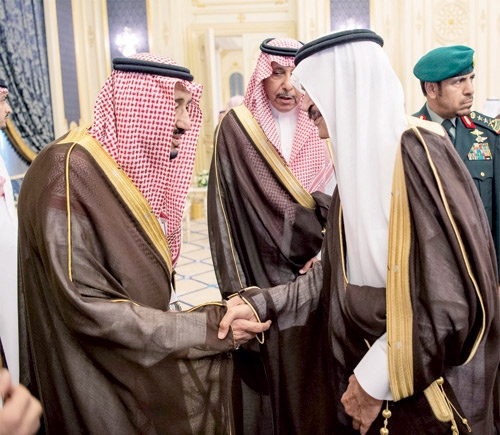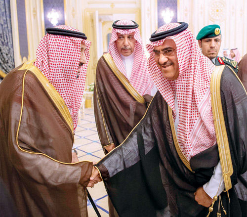 وفي بداية الاستقبال تشرف الجميع بالسلام على خادم الحرمين الشريفين -أيده الله-.